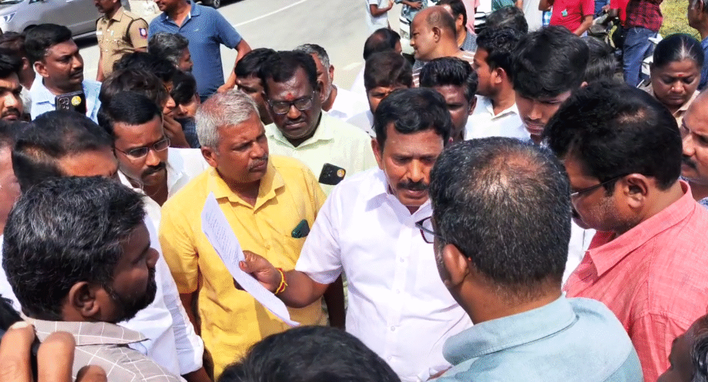மேலும் சம்பவ இடத்திற்கு வந்த முன்னாள் அமைச்சர் பெருந்துறை அதிமுக பொறுப்பாளர் தோப்பு வெங்கடாசலம் அதிகாரிகள் மற்றும் காவல் துறையினரிடம் பேச்சுவார்த்தை நடத்தினார்.