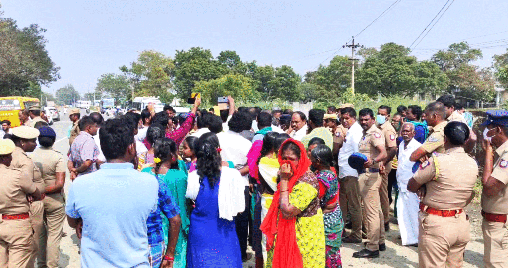 மேலும் காலை கைது செய்தவர்களை உடனடியாக விடுதலை செய்ய வேண்டும் எனவும் கோரிக்கை வைத்தனர்.பேச்சுவார்த்தைக்கு பிறகு அங்கு வந்திருந்த குப்பை லாரிகள் திருப்பி அனுப்பப்பட்டது