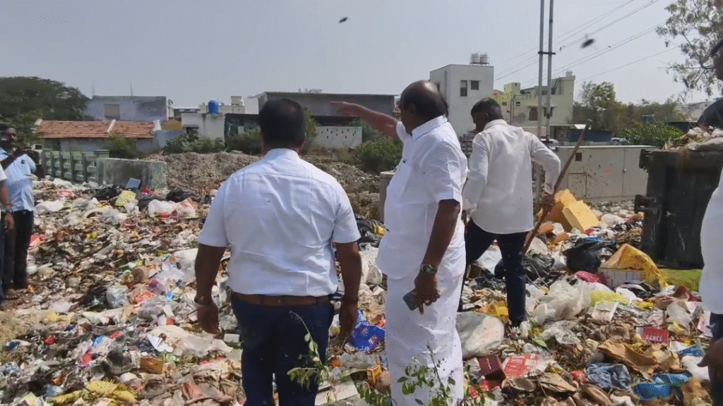தொடர்ந்து அங்கிருந்த அதிகாரிகளை குப்பையின் மேலே ஏறி நின்று பார்க்கச் சொன்னார் .தொடர்ந்து அதிகாரிகள் பேச்சுவார்த்தையில் ஈடுபட்டு வருகிறார்கள் மேலும் குப்பைகளை இயந்திரம் கொண்டு அள்ளி வருகிறார்கள்.