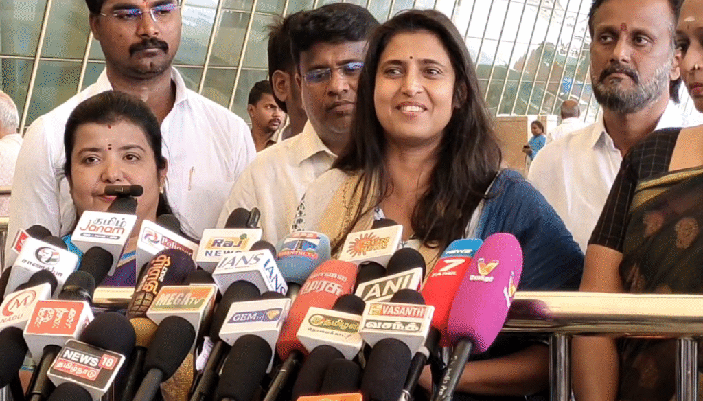 கோவை விமான நிலையத்தில் நடிகையும் பாஜக நிர்வாகியுமான கஸ்தூரி செய்தியாளர்களை சந்தித்தார், அப்போது பேசிய அவர், தி.மு.க ஆட்சிக்கு வந்து ஐந்து ஆண்டுகள் நிறைவு அடைந்து உள்ள நிலையில், தமிழ்நாட்டில் சட்டம் ஒழுங்கு முற்றிலும் சீர்கெட்டு விட்டதாக குற்றம்சாட்டினார்.