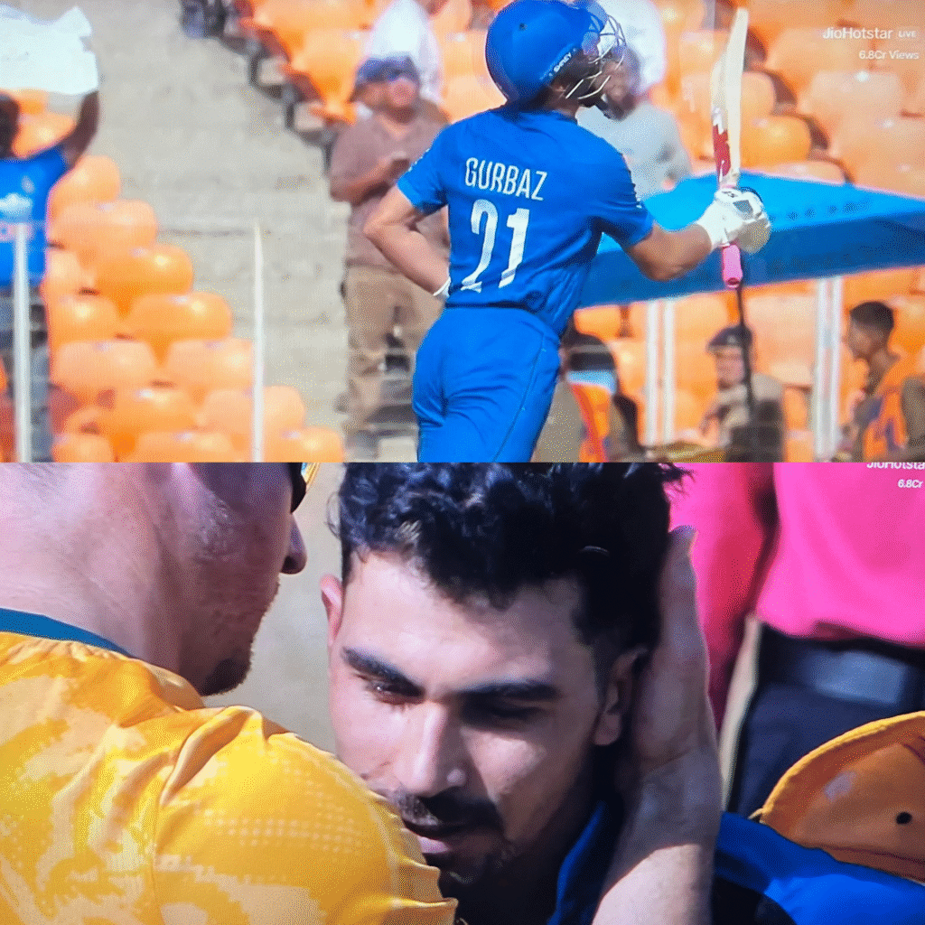 போட்டியில் தோல்வியடைந்ததும் ஆப்கானிஸ்தான் வீரர் குர்பாஸ் குமுறி அழுத காட்சி அனைவரையும் கண்கலங்க வைத்தது.