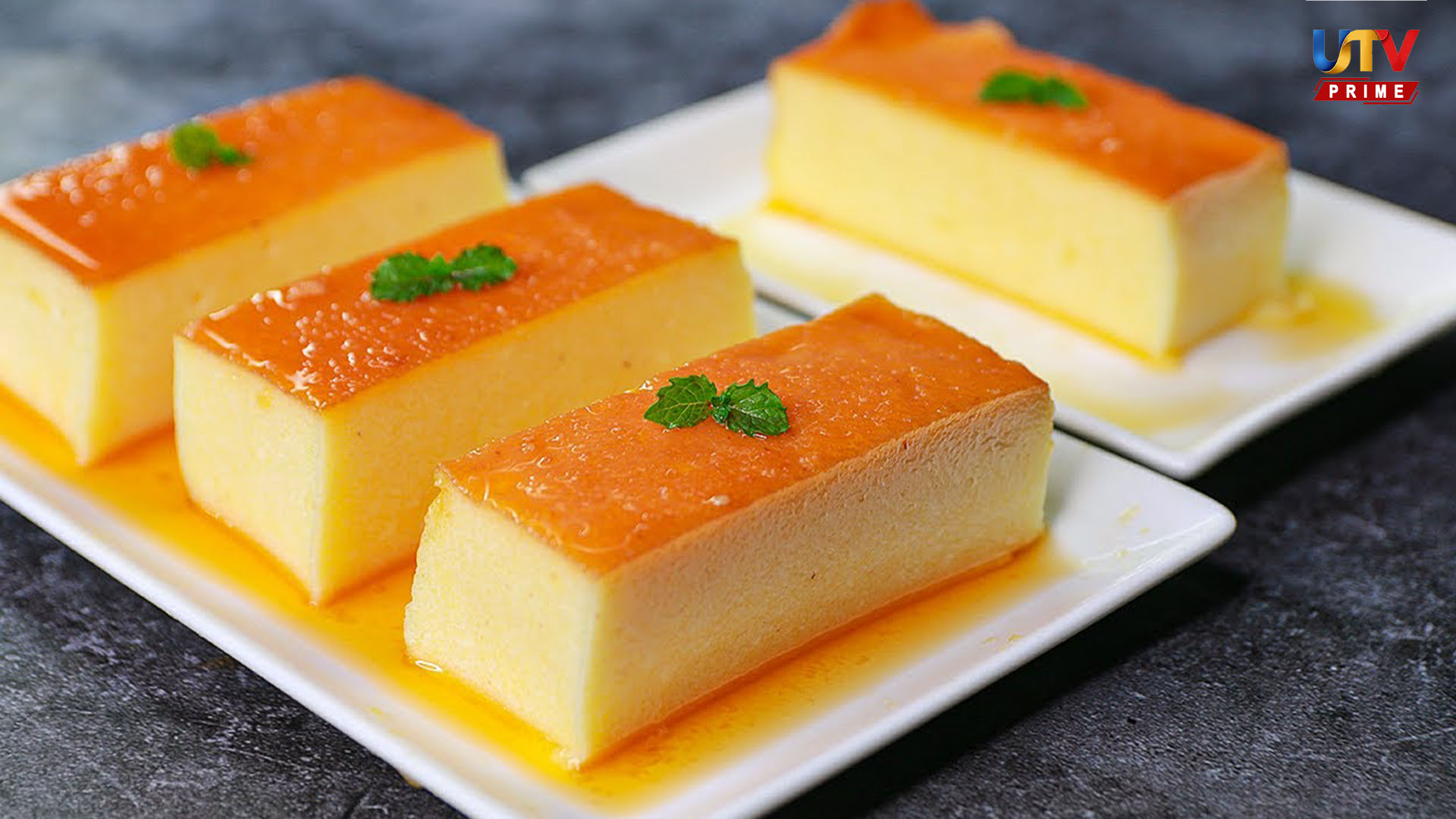 Step 3) ஒரு பாத்திரத்தில் முட்டைகள், வெண்ணிலா சாறு சேர்த்து நன்றாக அடிக்கவும். Step 2 இல் உள்ள புட்டிங் கலவையை படிப்படியாக சேர்த்து நன்கு கலக்கவும். அதை கேரமல் மீது ஊற்றி மூடி வைக்கவும்.