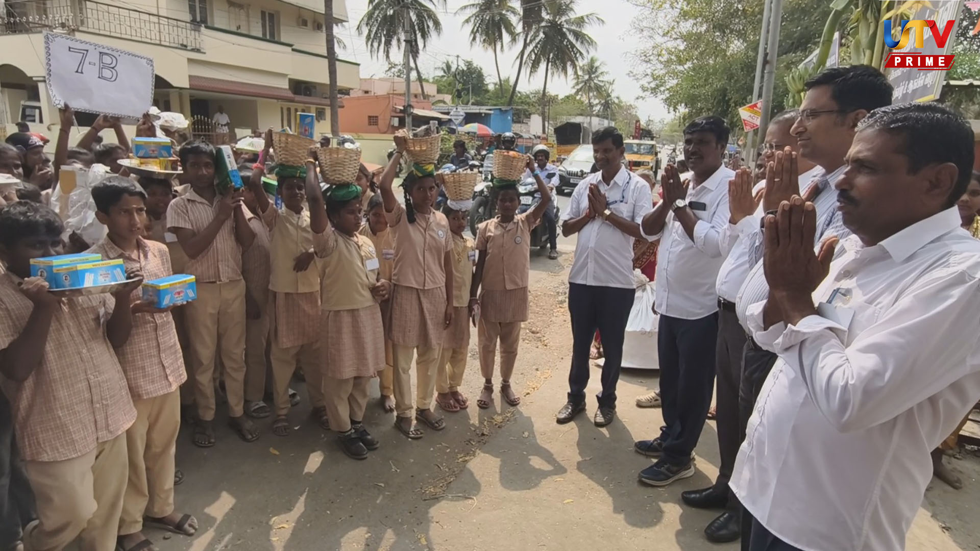 இதில், முதல் நிகழ்வாக பள்ளியில் பயிலும் மாணவ மாணவிகள், முன்னாள் மாணவர்கள், பெற்றோர்கள் மற்றும் பொதுமக்கள் இணைந்து 108-தட்டுகளில் பழங்கள், பூக்கள், இனிப்புகள், பேனா, பென்சில், கலர் பென்சில், ஸ்கெட்ச், சாக்பீஸ், டஸ்டர், பேப்பர், மார்க்கர், நோட்புக், கடிகாரம், தம்ளர், ஸ்கேல், ஸ்டேப்ளர், பைல்கள், மேப்கள் என பள்ளிக்கும், மாணவர்களுக்கு தேவையான பொருட்களை சீர் வரிசையாக எடுத்துக்கொண்டு மேளதாளத்துடன் ஊர்வலமாக பள்ளிக்கு கொண்டுவந்து வழங்கினர்.