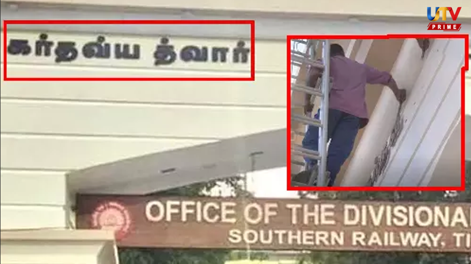 புதியதாக கட்டி முடிக்கப்பட்ட Southern Railway-யின் திருச்சிராப்பள்ளி மண்டல ரெயில்வே அலுவலக நுழைவுவாயிலுக்கு “கர்தவ்ய த்வார்” என இந்தியில் பெயரிடப்பட்ட விவகாரம் அரசியல் வட்டாரங்களில் கடும் சர்ச்சையை ஏற்படுத்தியது.