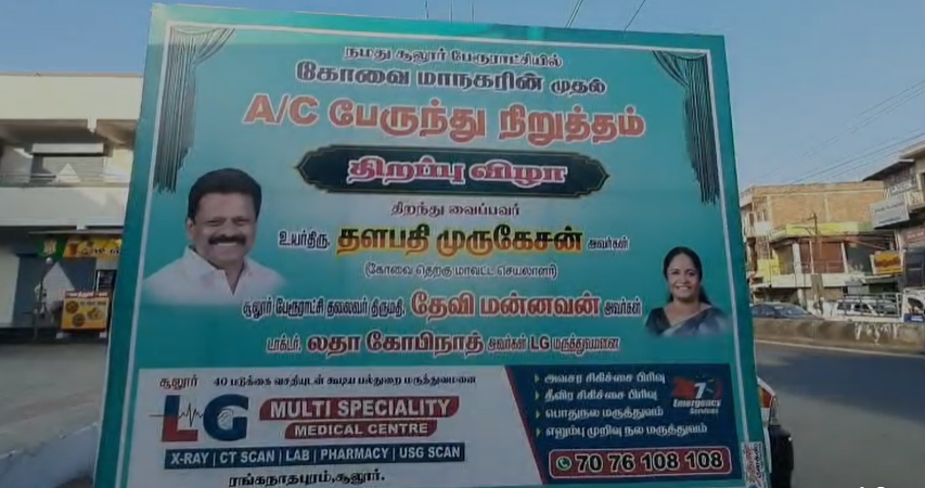 AC bus shelter Tamil Nadu Coimbatore first AC bus stop Coimbatore local news Coimbatore selfie point Sulur AC bus shelter Sulur town panchayat project சூலூர் ஏசி பேருந்து நிறுத்தம்