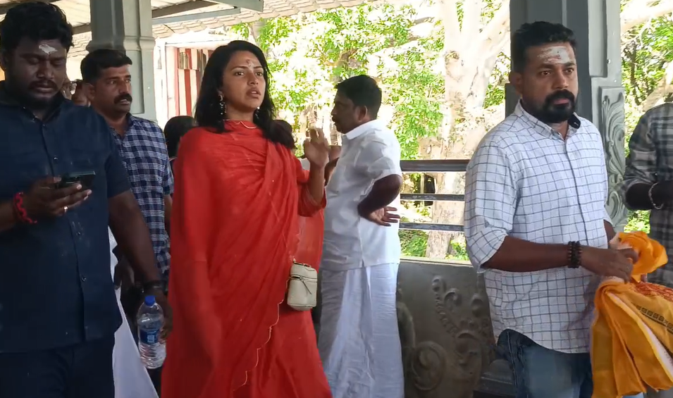 கோயில் ஊழியர்கள் மற்றும் அங்கு திரண்டிருந்த பொதுமக்கள், நடிகை அமலாபாலுடன் புகைப்படம் மற்றும் செல்ஃபி எடுத்துக் கொண்டனர்.